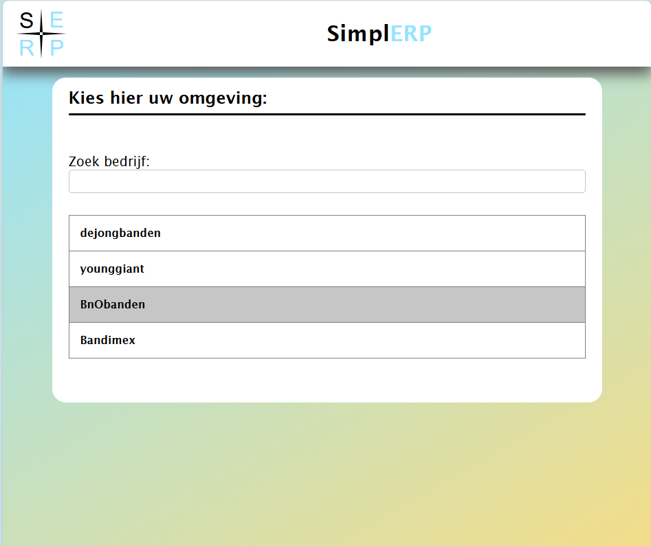 Hier kunt u uw bedrijf selecteren waarna de inlogpagina volgt: